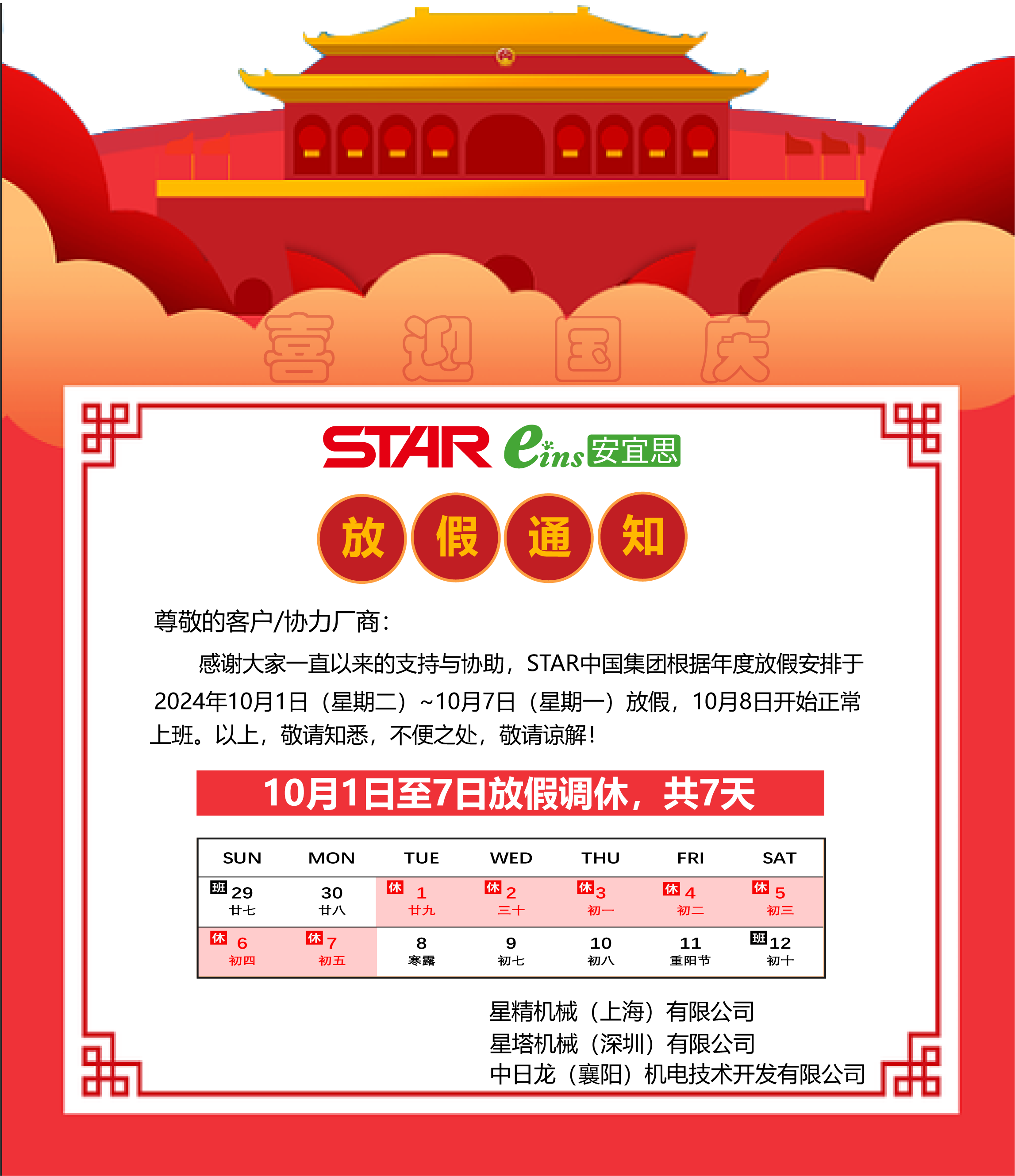 STAR集團(tuán)春節(jié)放假通知